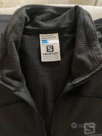 Usata 1/2 volte per taglia sbagliata Felpa sportiva da uomo Salomon, perfetta per l'attività fisica. Realizzato in AdvancedSkin Warm AdvancedSkin Warm: migliora il comfort mantenendo il calore e l'asciutto e proteggendo l'utente quando ne ha bisogno. Dettagli : - Vestibilità slim - Zip frontale completa. - Collo alto. - Tasche laterali con zip. - Logo Salomon sul petto.