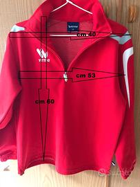 Felpa sportiva a marchio Virma, di colore rosso, perfetta per l'attività fisica o il tempo libero. Presenta un design moderno con dettagli a contrasto sulle maniche. Misure precise sono in foto (riporta tg. XS).