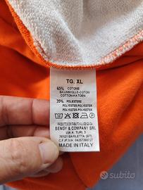 Design color block arancione, bianco e nero con logo Starter sul petto e sulla manica.