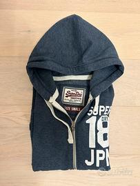 Felpa originale SuperDry Taglia S Color grigio/blu Felpata