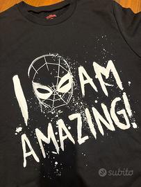 Design: Nera con stampa frontale "I AM AMAZING!" e maschera Spider-Man. Super cool!