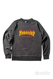 Felpa nera Thrasher con classico logo Flame frontale. Vestibilità comoda, ideale per uno stile streetwear. In buone condizioni, usata pochissimo. Nessun buco qualche difetto ma non gravi.