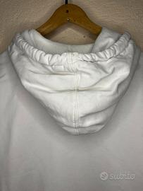 Felpa con cappuccio Timberland di colore bianco, caratterizzata dall'iconico logo dell'albero stilizzato in nero sul davanti.