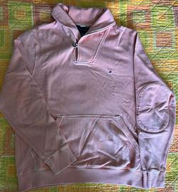Felpa con collo sciallato, tasche frontali e toppe Color salmone Marca Tommy Hilfiger Taglia M europea (S americana)