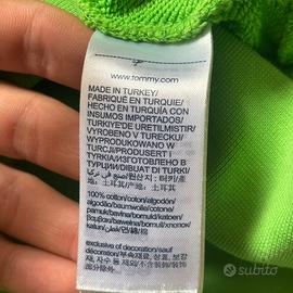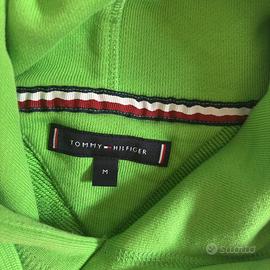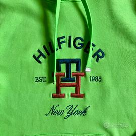 Vendo bellissima felpa con cappuccio originale Tommy Hilfiger, color verde lime/neon, perfetta per dare un tocco di colore al guardaroba. • Dettagli: Maxi logo frontale ricamato in rilievo con monogramma "TH" e scritte "Hilfiger New York - Est. 1985". • Qualità: 100% Cotone di alta qualità, tessuto morbido e resistente (made in Turkey). • Condizioni: Ottime, come nuova. Nessun segno di usura, macchie o sbiadimenti. I ricami sono integri e i laccetti hanno i terminali in metallo logati.