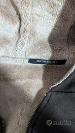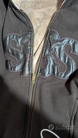 Felpa con pelo all' interno e cerniera. Stampe frontali leggermente usurate.
