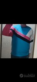 Felpa Umbro vintage, questa felpa anni '90 incarna lo spirito audace e colorato della moda sportiva di quel decennio. II design color block con tonalità vivaci come teal, rosa e bianco, abbinato al logo diagonale, la rende un capo distintivo e ricercato. Realizzata in morbido misto cotone e poliestere, è perfetta per chi ama lo stile rétro con un tocco urbano. Tg M, vestibilità regolare. lo sono alto 1,75 x 70 kg Regolatevi in base alle misure che sto per darvi. Misura spalle 50, lunghezza felpa 60, misura ascelle 50, lunghezza maniche 45.