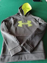 Felpa Under Armour ragazzi , grigia con interno giallo fluo. taglia YLG taglia USA 14/16 in europa XS ( nelle foto la indosso io che ho taglia M)