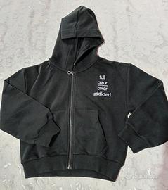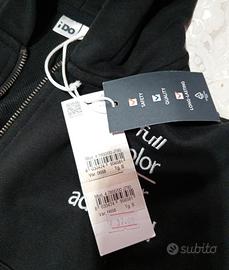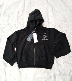 Felpa con cappuccio tg S 128 7/8 anni Nuovo. Lunghezza 42 cm Spalle 42 cm Lunghezza manica 40cm Giro torace 78 cm Nero Tg S/128 come 7/8 anni Unisex Accetto offerte