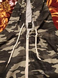 Vendo questa felpa, molto leggera, di Shein, con chiusura a cerniera e con lacci per regolare il cappuccio. Si presenta in ottime condizioni