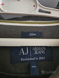 Vendo felpa originale Armani Jeans, taglio slim fit, colore verde militare con dettagli neri.