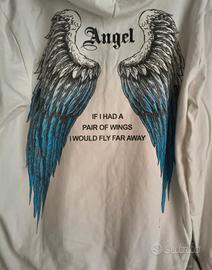 Felpa uomo bianca con ali azzurre Vintage taglia S