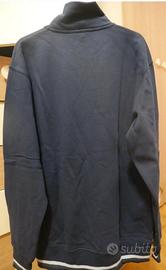 Logo in piccolo in alto a sinistra frontalmente. Chiusura con cerniera. Colore blu scuro con inserti bianchi. Tessuto caldo e morbido.