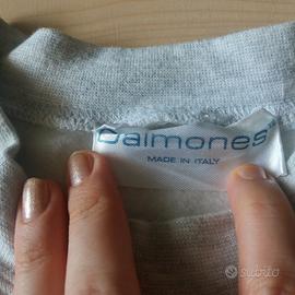 Felpa uomo/donna, marchiata Daimones, colore grigio chiaro con dettagli delle maniche in velluto color vino. Con logo rosso davanti e scritta sul retro. Made in Italy.