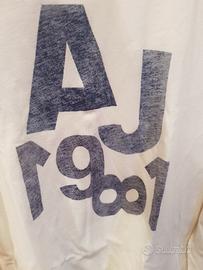 Felpa uomo Armani Jeans colore bianco con scritte blu. Taglia M.