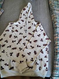 Felpa da uomo con cappuccio bianca con fantasia 500 e vespa rosse.
