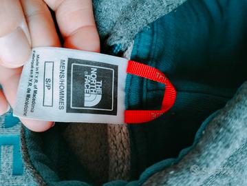 Felpa uomo The North Face colore grigio con scritte e interno cappuccio colore verde petrolio , taglia S