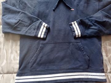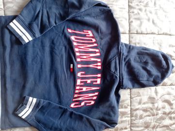 felpa uomo Tommy Hilfiger con cappuccio. blu con maniche e bordo bianco. con scritta sul retro e tasca sul davanti. taglia xs (larghezza spalle 57cm lunghezza 63 cm). in ottimo stato