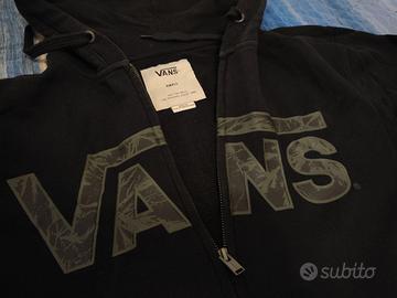 Felpa con cappuccio e zip Vans. Colore nero con logo verde camo. Indossata pochissime volte. Ottime condizioni. Taglia S (veste bene anche a chi indossa M).