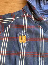 🎨 Dettagli: fantasia a quadri blu/rosso/bianco, tasca a marsupio, cappuccio, ricamo sul petto con “W” e scritte “Wodoo Style Haiti Caraibi 1947” + ricamo “Play-Chick” sulla manica