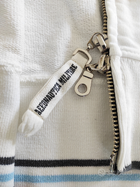 Felpa leggera AERONAUTICA MILITARE modello vintage di mezza stagione taglia M dalla vestibilità regolare, realizzata in cotone garzato di colore bianco: si caratterizza per la stampa del logo sulle due maniche realizzata tramite grosse lettere cucite singolarmente sulle stesse in cotone di colore nero. Il capo si presenta in buono stato di conservazione, il suo prezzo di cartellino era di Euro 156, liquido ad Euro 55+spedizione. Gentilmente astenersi da offerte difformi dalla mia richiesta, grazie.