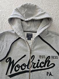 Vendo felpa Woolrich da uomo. Con cappuccio. Taglia L. Colore grigio. Scritta logo sul petto di colore blu. 2 tasche frontali