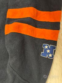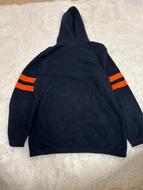 spedizione in 1h #spedizioneveloce #spedizionerapida #nflfelpa #nflpile Felpa con cappuccio e zip dei Chicago Bears. Colore blu scuro con iconico logo "C" arancione e strisce coordinate sulle maniche. Logo della conference ricamato sulla spalla. Modello comodo con tasche frontali, perfetto per uno stile streetwear o sportivo.