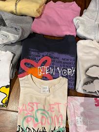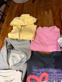 Ciao. Vendo tre felpe felpate, tre felpe garzate e tre maglie a maniche corte. Cone nuove. Taglua 9/10 anni marca zara.