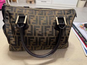 Borsa bauletto Fendi FF ZUCCA rifiniture in pelle marrone e metalleria oro misure L40 x H27 x P18cm. La borsa ha la sua sacca porta borsa in dotazione. Consegma a mano Roma zona eur pagamento al momento della consegna con bonifico istantaneo no contanti