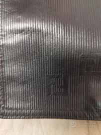 Fendi vintage in pelle stampata righe e F blu scuro, in buone condizioni non presenta parti rotte o altro piccole imperfezioni visibili in foto misure:26-17-11
