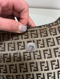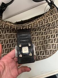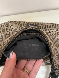 Fendi Mamma Baguette. Ottime condizione generale,presente usura sulle bordi nella cuciture,un piccolo strappo(messo nel cerchio blu)leve usura su hardware.lati e tela perfetti.Presente codice di autenticazione.Misura 36/21/5