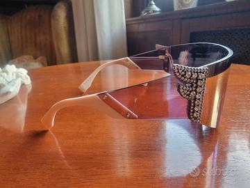 occhiale da sole a specchio Fendi con logo in Swarowski sulle bande laterali. come nuovo, indossato 2 volte