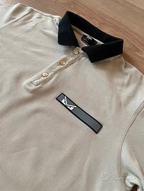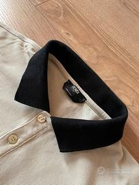 Polo Fendi originale, dal design elegante e minimal. Presenta colletto nero a contrasto, chiusura a tre bottoni e iconico logo Fendi sul petto.