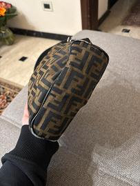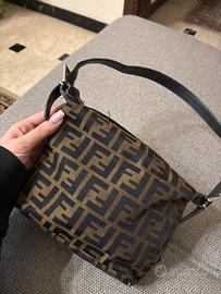 mini bag fendi vintage classico monogramma 15x20 cm presenta delle usure sulle cuciture del piano di appoggio, piu che buone condizioni, cinta a spalla regolabile, cinghie e cerniera in argento, capiente