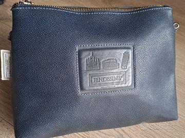 Si vende un'elegante pochette in morbida pelle blu a piccole borchie della linea FENDISSIME.