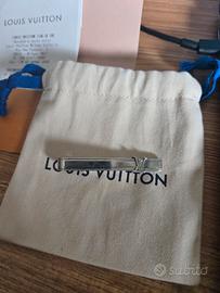 Vendo elegante ferma cravatta Louis Vuitton originale, realizzato in metallo lucido con iconico logo LV. Accessorio di classe, perfetto per occasioni formali o come idea regalo di lusso.