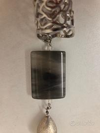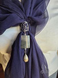 Vendo ferma foular, storico fine anni '70/primi anni '80 composto di 3 elementi, la lunghezza dell'anello in argento 800 è di cm.3 con diametro cm.2, pietra dura e goccia in pietra color oro lavorata, la lunghezza totale del gioiello è di cm. 10. Pezzo rarissimo o introvabile, nuovo, mai usato. Se telefonate a Graziano 340-4110406 dalle 10 alle 19. Si spedisce dopo eventuale bonifico istantaneo prima della consegna compreso di spese di spedizione oppure la merce va ritirata personalmente e pagata in contanti, a Vago di Lavagno (VR) o, previo accordo nelle immediate vicinanze, max 10 Km.