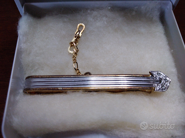 Vendo fermacravatta in argento e oro con pietre svaroski originali praticamente mai utilizzato! Questo accessorio è di alta manifattura tipica italiana e rappresenta un tipico esempio di classe e stile artigianale made in Italy! Se interessati all'acquisto e per ulteriori informazioni non esitate a contattarmi tramite whatsapp oppure telefonicamente..3331380149