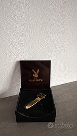 Elegante accessorio da uomo, realizzato in metallo dorato con finitura lucida, tipica dello stile sofisticato degli anni ’80. Presenta il celebre logo del coniglietto Playboy inciso o in rilievo sulla parte frontale, simbolo iconico di classe e audacia.