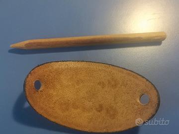 Elegante fermaglio per capelli realizzato in pelle, con un bellissimo design floreale inciso e colorato. Perfetto per aggiungere un tocco di stile.