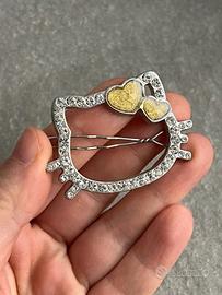 Vendo fermaglio per capelli a forma di Hello Kitty, realizzato in metallo con dettagli brillanti.