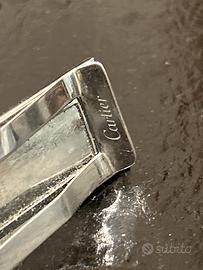 In vendita un raffinato fermasoldi firmato Cartier, pezzo iconico della celebre linea Santos. Caratterizzato dal design industriale e sofisticato che ha reso leggendaria questa collezione, l'accessorio unisce l'eleganza classica alla modernità dei dettagli metallici. Dettagli dell'Articolo: • Brand: Cartier • Modello: Santos de Cartier • Design: Struttura in acciaio inossidabile con placca frontale bicolore (finitura dorata e acciaio satinato). • Dettagli Iconici: Decorato con le classiche viti Santos a contrasto e il logo doppia C di Cartier inciso centralmente. • Punzonatura: Firma "Cartier" incisa all'interno del fermaglio a garanzia di autenticità. Condizioni e Corredo: L'oggetto si presenta in ottime condizioni generali, con lievissimi segni di utilizzo tipici del metallo lucido, che non ne compromettono l'estetica. Il set include: • Scatola originale Cartier rossa con logo dorato. • Certificato di autenticità originale (compilato in data 31.01.2023). • Sacchetto protettivo (dust bag) in tessuto nero. • Referenza modello: CROG 000 865.