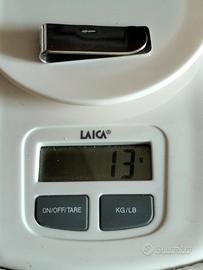Fermasoldi Elegante in Argento 925 - Vintage Made in Italy - 13g - Ottime Condizioni Descrizione del Prodotto Eleganza senza tempo per il tuo stile quotidiano. Metto in vendita un raffinato fermasoldi in Argento 925, un accessorio classico che unisce praticità e distinzione. Caratterizzato da un design minimalista e pulito, il complemento ideale per chi desidera gestire le banconote con ordine, eliminando l'ingombro del portafoglio tradizionale. Dettagli dell'oggetto: Materiale : Argento Massiccio 925 (punzonato). Peso : 13 grammi (misurati con precisione su bilancia digitale Laica). Design : Linea sobria e moderna, finitura lucida a specchio. Condizioni : Usato in ottime condizioni generali, con una splendida patina naturale che ne certifica l'autenticità (facilmente lucidabile se si preferisce l'effetto "nuovo"). Dimensioni : Compatto e sottile, perfetto per la tasca della giacca o dei pantaloni. Perché sceglierlo? Qualità Certificata: L'argento 925 garantisce valore nel tempo e resistenza. Regalo Perfetto : Un'idea regalo intramontabile per compleanni, lauree o testimoni di nozze. Spedizione in tutta Europa: Imballaggio accurato e spedizione tracciabile per garantire una consegna sicura e veloce.