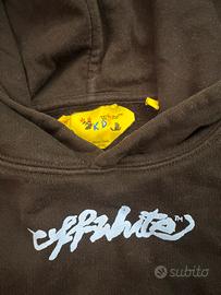 Felpa Junior, off White, colore nero, taglia 10 anni con scritta off White sul davanti, colore azzurro e classico, logo azzurro sulla schiena.