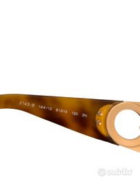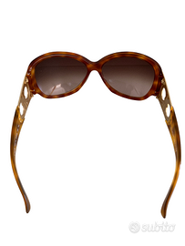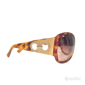 Realizzati in acetato e metallo color oro, modello oversize in stile retrò. Color tartaruga. Doppio logo Gancino impreziosito da micro cristalli Swarovski sulle aste. Made in Italy. Larghezza 13 cm. Lunghezza montatura 6 cm, larghezza 7 cm. Modello 2143-B, 144/13 61-15. Articolo mai usato. Consegnato con imballaggio originale. Senza fattura.
