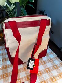 Questa elegante borsa a tracolla Ferrari è realizzata con tessuti e pelle di alta qualità. Modello Ferrari Ferrari Formula 1 Club. Questa borsa è molto lussuosa e di grande qualità percepita grazie ad una finitura di fascia alta. Prodotto in Italia (raro) Questa esclusiva borsa Ferrari è molto rara sul mercato. Una meravigliosa opportunità per il fan/ collezionista della Ferrari F1 di aggiungere questo oggetto Ferrari alla propria collezione. Dimensioni approssimative: 35 cm x 30 cm Oggetto assolutamente nuovo, con cartellino e dust bag