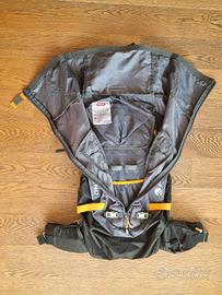 Tasche: Sul cappuccio | Di sicurezza in rete nel cappuccio | Posteriore | Tasca interna porta pala e sonda | Su fascia a vita | Laterali a soffietto con zip
