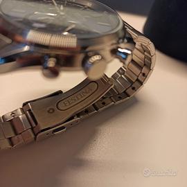 Festina Timeless orologio con cronografo, con cinturino in acciaio, cassa blu, da uomo. Nuovo, mai usato, con scatola e libretto.