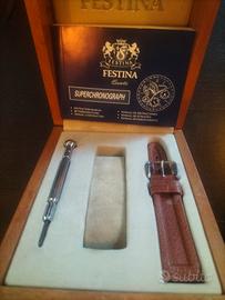bella scatola vintage orologio Festina, in legno completa con un cinturino in pelle, e un cacciavite x orologi