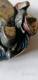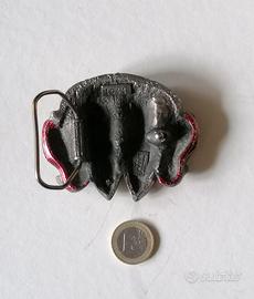 Bellissima fibbia in metallo vintage: Sexy Boots Cowboy Cowgirl Great American Buckle Company. Edizione numerata 1041 e datata 1982. Made in USA. Dimensioni 8 x 6,5 x 2 cm. Pesante. Dettagli della lavorazione minuziosi, da miniatura. In buone condizioni con lievissima scoloritura dello smalto blu e rosso. Da collezionare o usare!